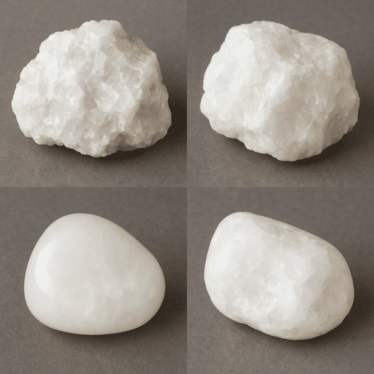 Snow Quartz is a white to opaque variety of quartz created by countless microscopic fluid or gas inclusions trapped during formation. These tiny inclusions scatter light, giving the mineral its cloudy, “snowy” appearance. Unlike clear quartz, Snow Quartz has a soft, soothing glow that makes it visually distinct and highly collectible. It appears in massive form, veins, clusters, and tumbled stones.